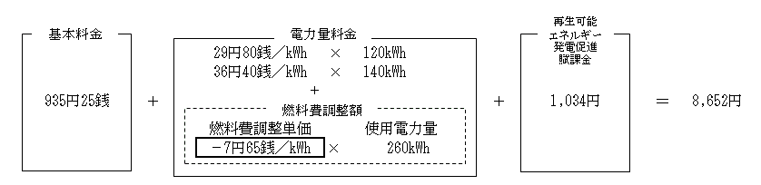 - ※ 基本料金、電力量料金、再生可能エネルギー発電促進賦課金を合計し、円未満は切り捨てます。