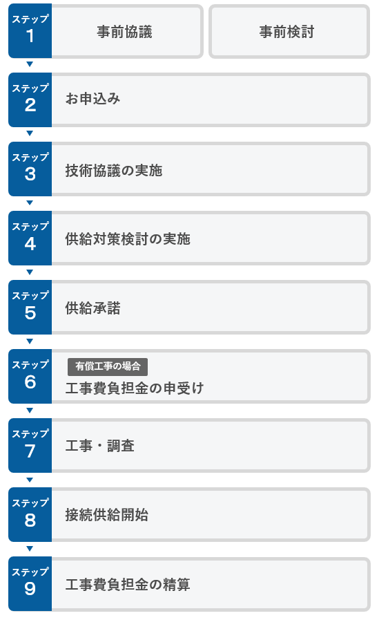 供給対策検討の実施- 申込内容に対して、当社供給設備の調査、供給方法等を検討。